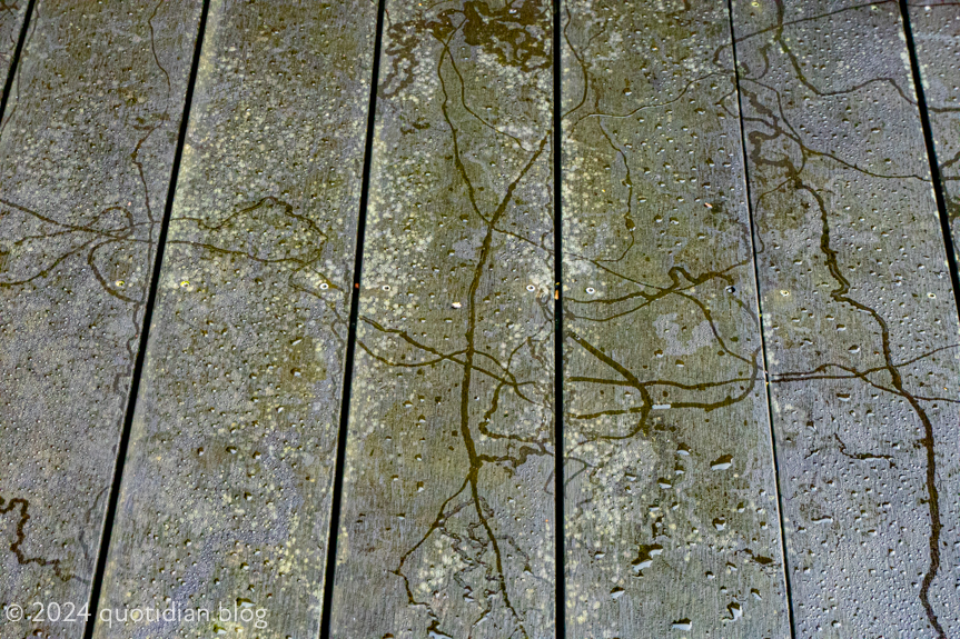 Decking has got algae on it. Needs dealing with. Not surprising after months of rain.